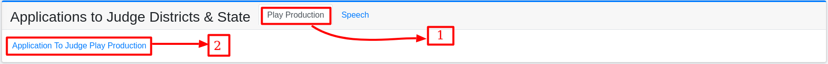 (No.1): The “Play Production” tab allows you to view content specific to Play Production Aplication to Judge Districts & State.