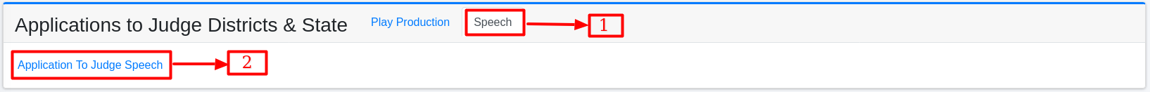 (No.1): The “Speech” tab allows you to view content specific to Speech Aplication to Judge Districts & State.