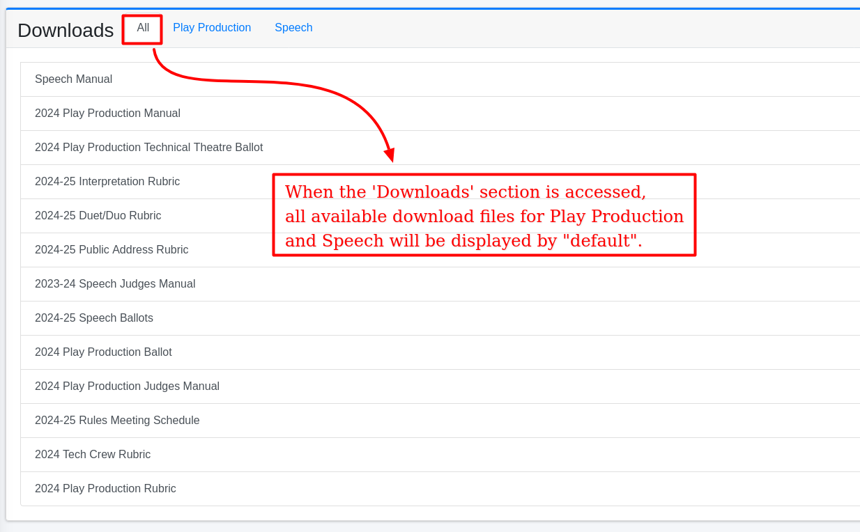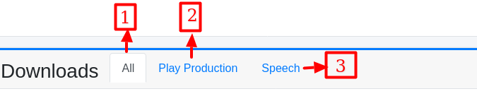 After clicking, you will see download type options: All, Play Production, and Speech.