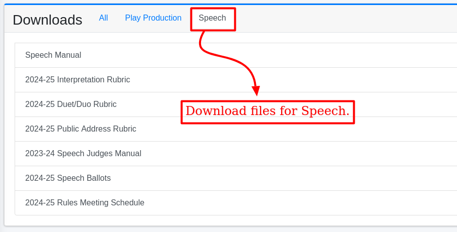 If you select Speech, it will display all the available files for Speech in the same way as Play Production.