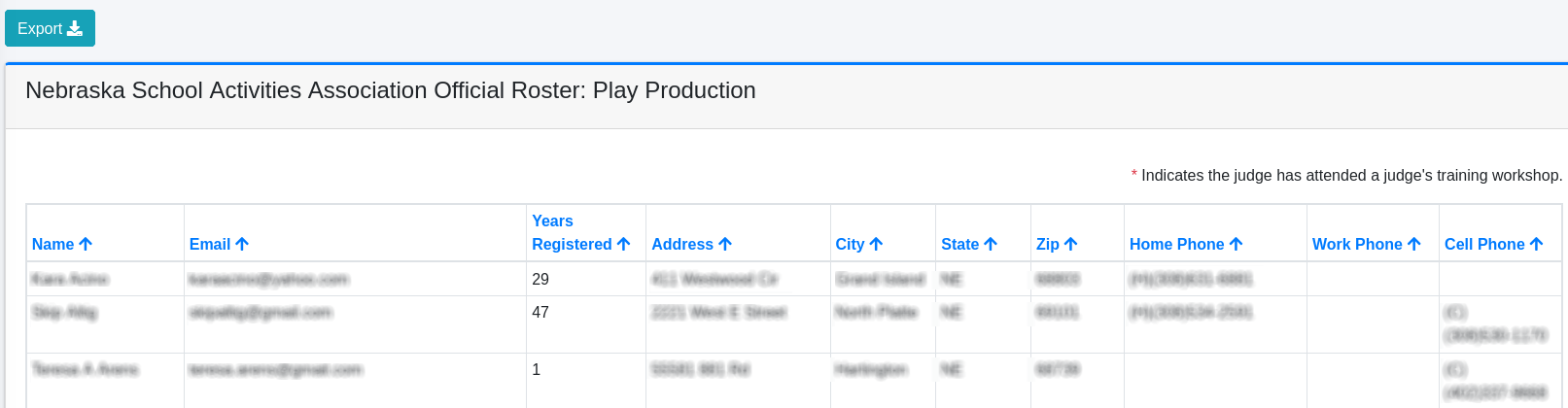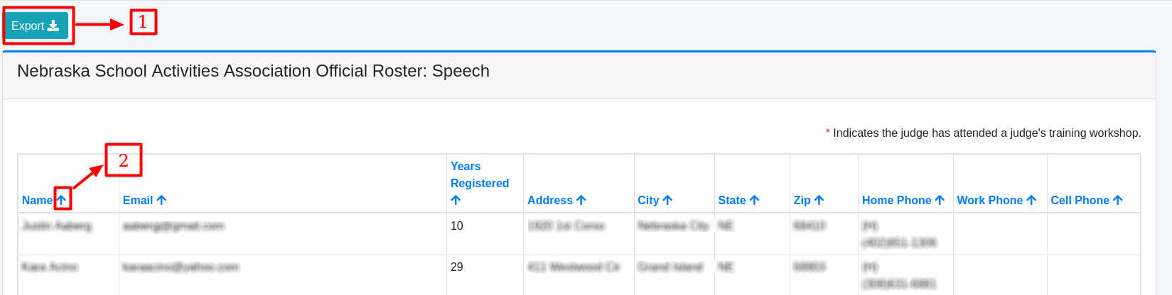 Sorting Arrow (No. 2): Each column in the roster (such as Name, Email, etc.) has an arrow icon that allows users to sort the data in either ascending or descending order.